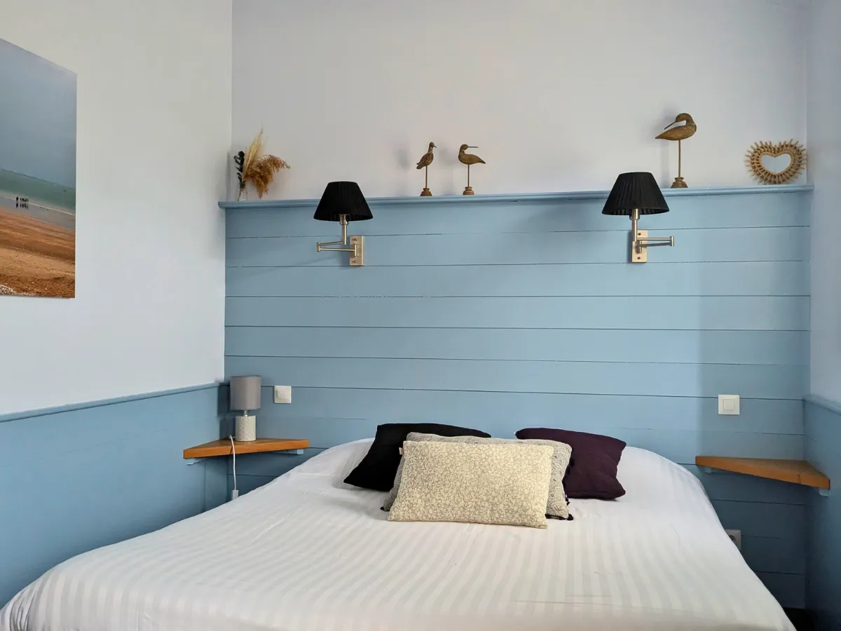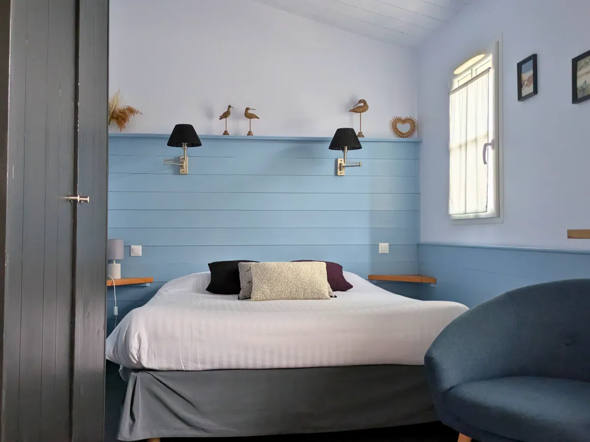 Pensée pour offrir une parenthèse de calme, cette chambre séduit par son atmosphère douce et équilibrée. Elle constitue un point d’ancrage agréable après une journée rythmée par les balades et les découvertes sur l’Île de Ré, invitant naturellement à ralentir.
